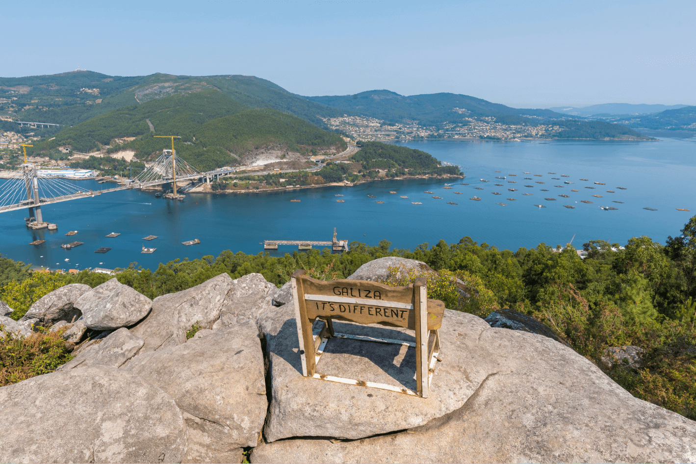 Um miradouro situado no alto de uma colina, com um banco que oferece uma das vistas mais espetaculares da região sobre a Ría de Vigo e a Ponte de Rande. Ideal para momentos de contemplação. - Puente de Rande